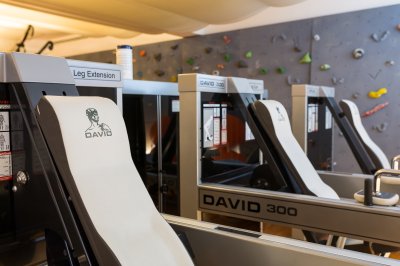 - Trainingsraum mit hochwertigen medizinischen Krafttrainingsgeräten, modernen Ergometrie-Geräten, gelenks- und bänderschonenden Laufbändern sowie eine Kletterwand und GALILEO-Vibrationsplatte zur optimalen Muskulatur-Aktivierung